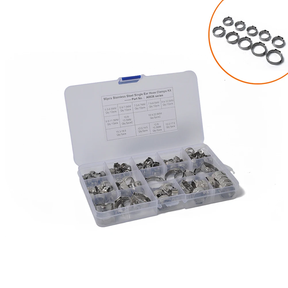 В комплекте 90 шт. хомутов для шланга, которые изготовлены из высококачественного материала из нержавеющей стали для прочного и практичного использования. Точный дизайн обеспечит его практичность в работе высокой производительности. Идеально подходит для труб воздушного шланга, водопроводов, топливных труб, силиконовых вакуумных шлангов, автомобильных аксессуаров для фиксации использования. Идеально подходит для профессионального или домашнего использования.