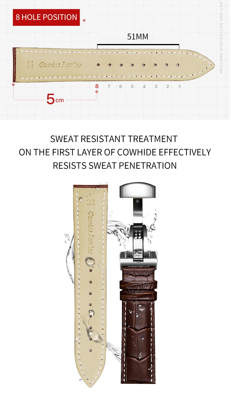 Note: Product Name:Stainless steel double button butterfly buckle Strap Buckle material: Stainless steel pin buckle Strap interface: flat direct port Gloss: matte Size: 16mm/18mm/20mm/22mm Thickness:about 3.0mm Length: Long side: about 125mm. Short side: about 75 mm (excluding buckle). Strap Color: Black, Brown, Light brown Buckle color:Silver,Black ,Golden,Rose gold We will send four needles for strap as a gift. Package including: Watchband ×1 Installation tools ×1 Spring bar ×4