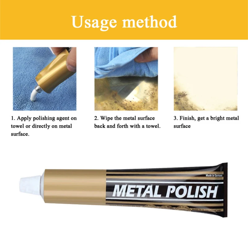 Металлическая Полировальная паста Подходит для: хрома, латуни, меди, никеля, нержавеющей стали и других металлических изделий. Особенно подходит для удаления: пятен, окислительной коррозии, ржавчины, обесцвечивания и пятен.