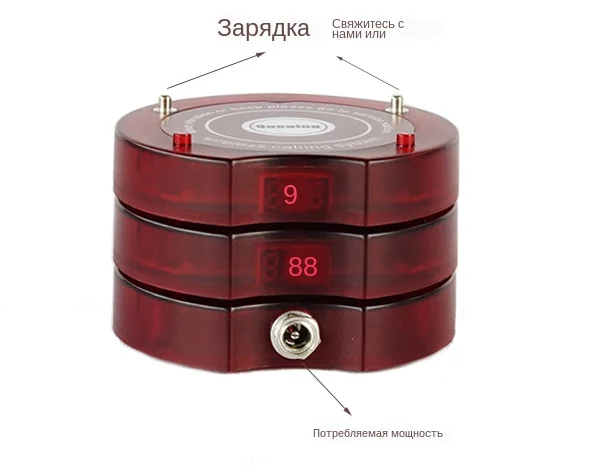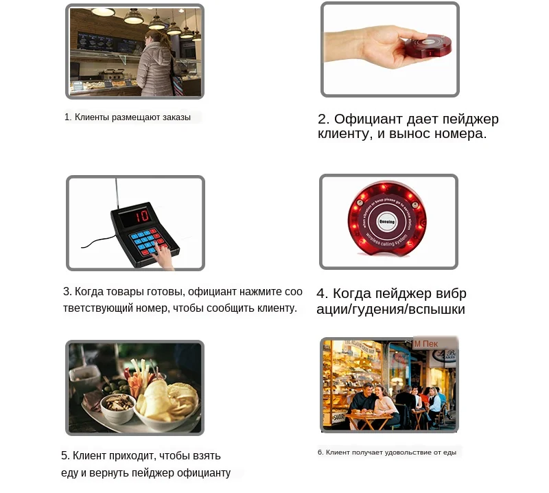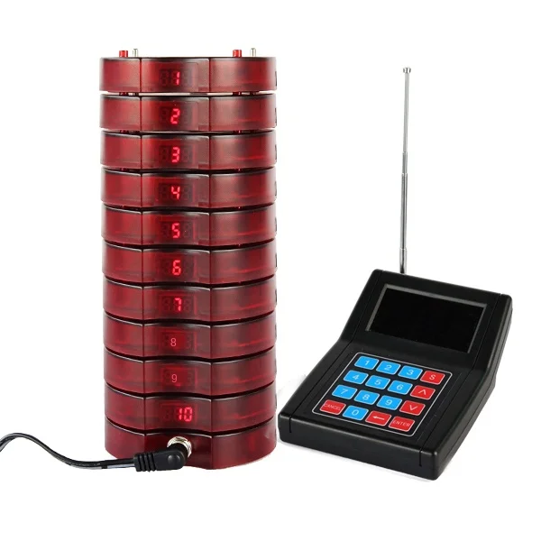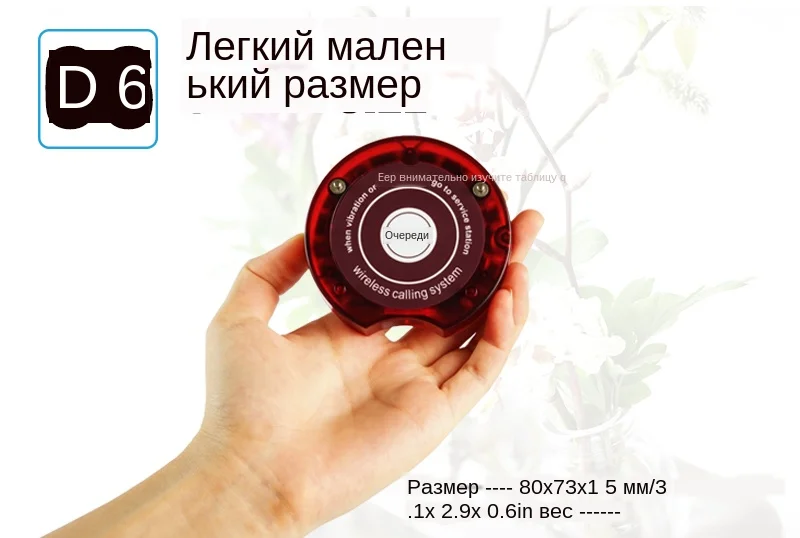 6. Размер: 80x73x15 мм/3,1x2,9 x 0.6in; Вес: 59 г/0,13 фунтов; Встроенный перезаряжаемый аккумулятор DC3.7V в каждом пейджере. С полной зарядкой он используется для не менее 72 часов в режиме ожидания, 36 часов в использовании. Независимая память позволяет избежать потери данных.