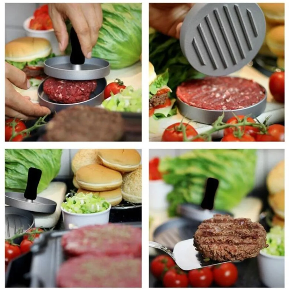 Вы устали от того, чтобы погладить свои гамбургеры вручную? Хотите ли вы заправить гамбургеры вкусным беконом, сыром, перцем или даже маком и сыром? Секрет изготовления гамбургеров, как профессионал, просто используйте пресс для бургеров! Это идеальный аксессуар для гриля, который поможет вам делать вкусные, идеально пропорциональные гамбургеры каждый раз. Инструкции по использованию: 1. Нажмите примерно от половины до 5/8 вашего мяса в пресс для бургеров. 2. Снимите большую чашку с верхней части пресс, сделайте полость, чтобы добавить наполнитель. 3. Выровняйте остатки мяса и поместите его поверх наполнителя. Добавьте большую чашку обратно в пресс и закройте свой бургер.