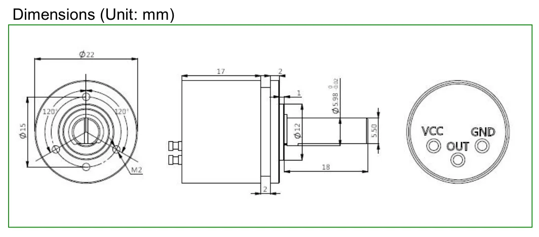 Маленький размер, максимальный наружный диаметр 22 мм Полный угол обзора 360 °, без мерок Linлинейность составляет ± 0.3% F.S. Выходной сигнал 0-5 в постоянного тока Напряжение питания 5 в постоянного тока Direction направление угла: вращение по часовой стрелке вращающегося вала Долгий срок службы товара. Небольшой Крутящий момент вращения Алюминий оболочки Прост в установке