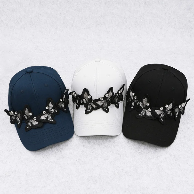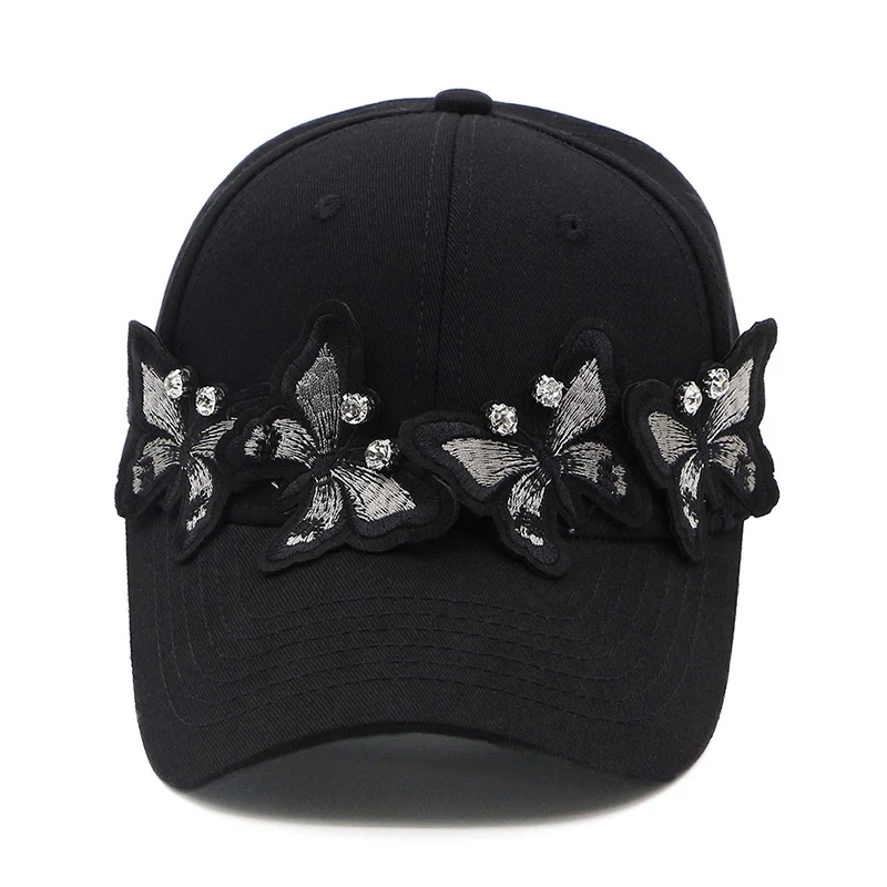 Женская хлопковая черная бейсболка с бабочками для женщин