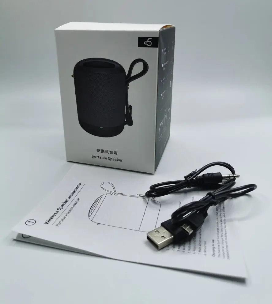 ● Версия Bluetooth: 5,0 ● Время воспроизведения: 5 часов "тест громкости 70%" ● Время зарядки: 2-5 ч ● Встроенный модуль Bluetooth беспроводной передачи данных, функция громкой связи ● Протокол передачи стерео аудио ● Поддержка воспроизведения U ● Поддержка воспроизведения MP3 песен, хранящихся в tf-карте • Поддерживает все аудио входа от внешних 3,5 мм терминалы ● Серийный (два динамика могут образовывать стереосистему) ● Поддержка вторичной зарядки ● Размер продукта: 92*92*155 мм ● G.W: 568g ● Поддержка tf-карты, USB, AuX, fm-радио