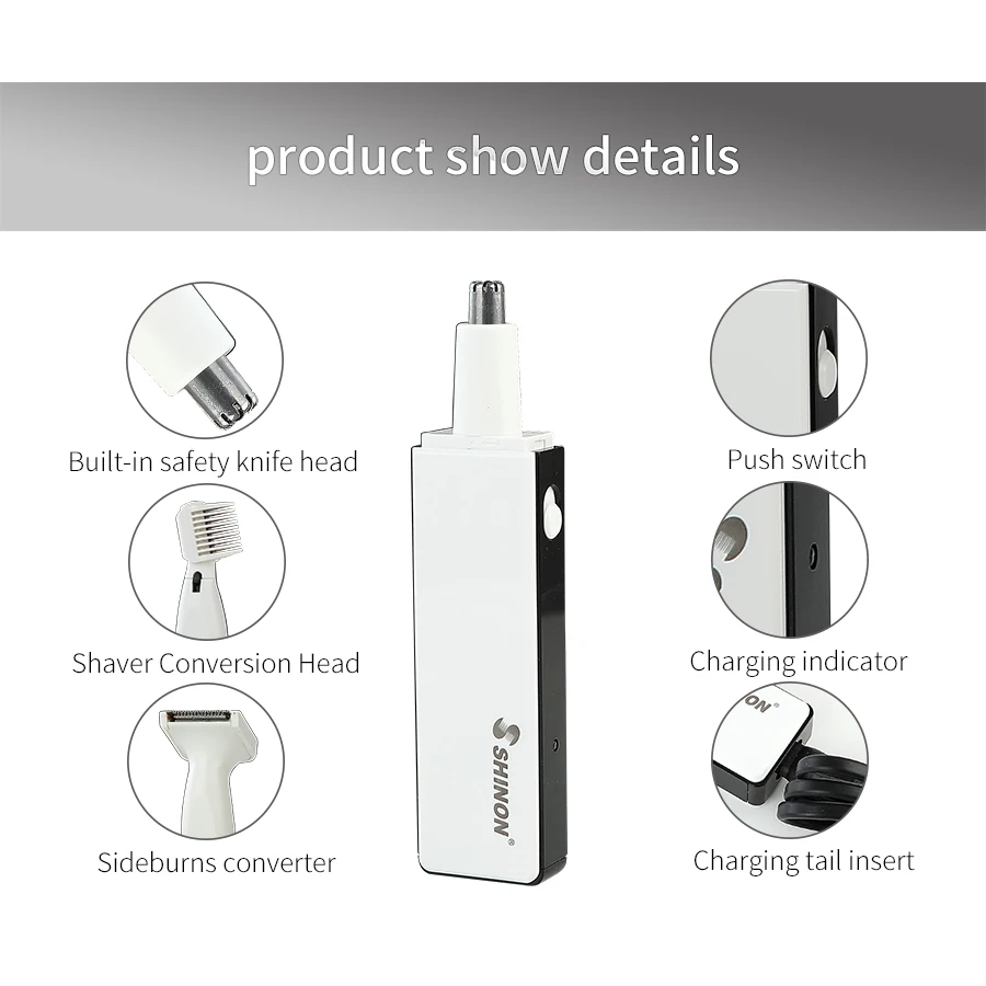 Если вы чувствуете себя смущенным, потому что ваш нос подвергается воздействию носа, когда вы разговариваете с кем-то? Вы хотите оставаться свежим и стильным в любое время и в любом месте? Этот маленький и изысканный Многофункциональный триммер-ваш выбор. Маленький решает все ваши проблемы с волосами на лице, такие как волосы на носу и ушах, брови, борода, боковая ожога и так далее. Держите вас свежим и красивым весь день. Теплый подарок для мужчин! Особенности: 3 в 1 Многофункциональный триммер для волос в носу для мужчин, подходит для различных стрижки волос на лице. • Мощная вращающаяся система точной резки на 360 ° Обеспечивает чистую, гладкую, безопасную, быструю и удобную работу без каких-либо болей. Это перезаряжаемый, очень удобный, энергосберегающий и экологически безопасный. • Лезвие из нержавеющей стали можно разобрать и промыть непосредственно, чтобы предотвратить рост бактерий и обеспечить долговечность. «Портативный и не занимает места, отлично подходит для переноски или путешествий. «Подходит для всех взрослых, как мужчин, так и женщин. Посылка включает в себя: 1 x триммер для волос 1 x триммер для волос с бородой 1 х Триммер для волос 1 x головка для стрижки бровей 1 x щетка для чистки носа 1 x usb-кабель для зарядки носа 1 х носотриммер руководство пользователя книга �� Примечание: 1. Пожалуйста, поместите триммер для волос в место, где дети не могут прикоснуться к нему. 2. Головки триммера для носа моются, но перезаряжаемый корпус не является.