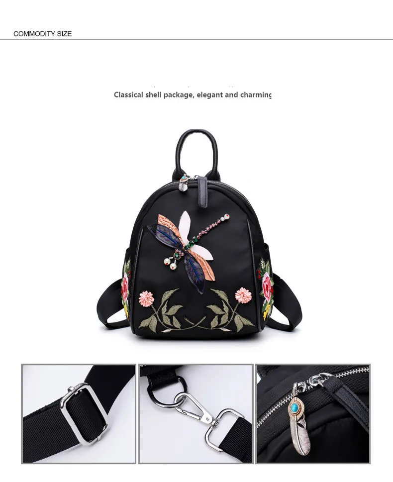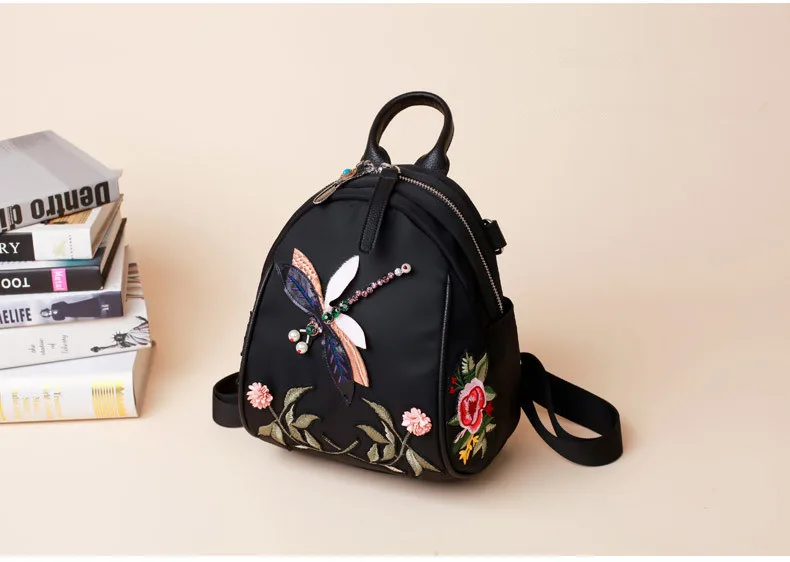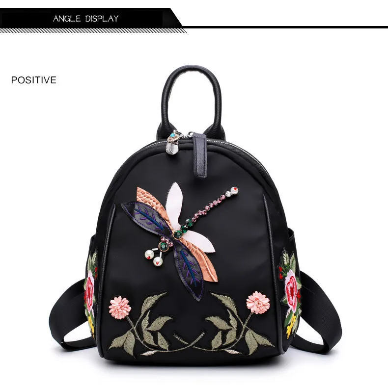 Модный 3D рюкзак Стрекоза для женщин, винтажный цветочный маленький рюкзак, дизайнерские брендовые Противокражные рюкзаки для девушек