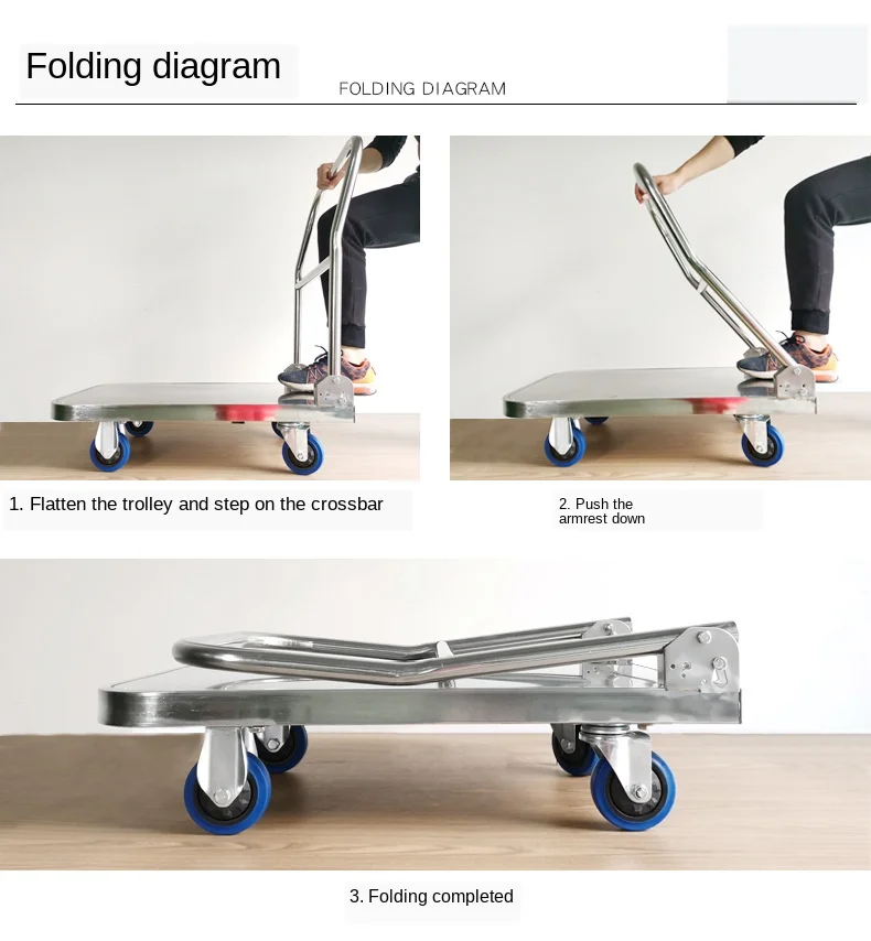 304 нержавеющая сталь плоская тележки Отель обеденный столик на колесиках Нержавеющая сталь складной mute тележка