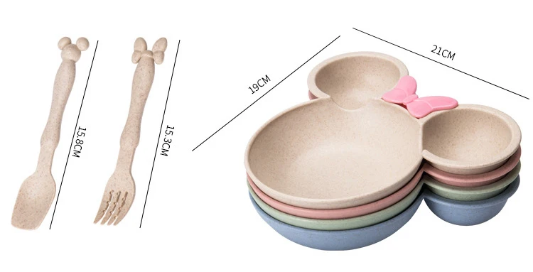 Натуральная пшеничная соломенная чаша, Детская мультяшная посуда, набор для малышей, Детская тарелка для кормления, Детская тренировочная чаша, ложка, вилка