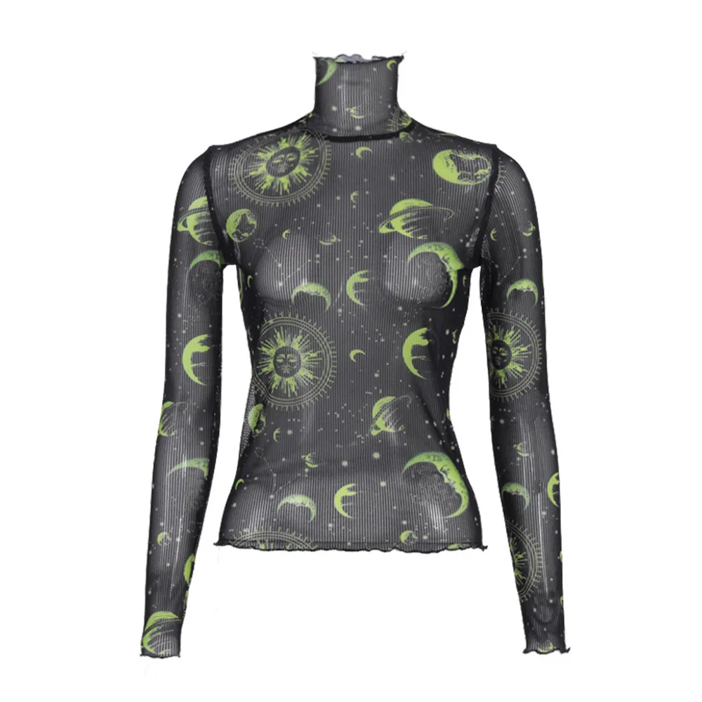 transparent funny t shirts women slim long sleeve casual streetwear aesthetic clothes neon top girl power shirt edgy elegant