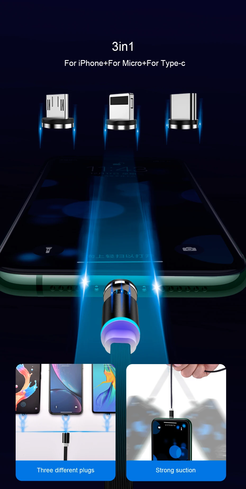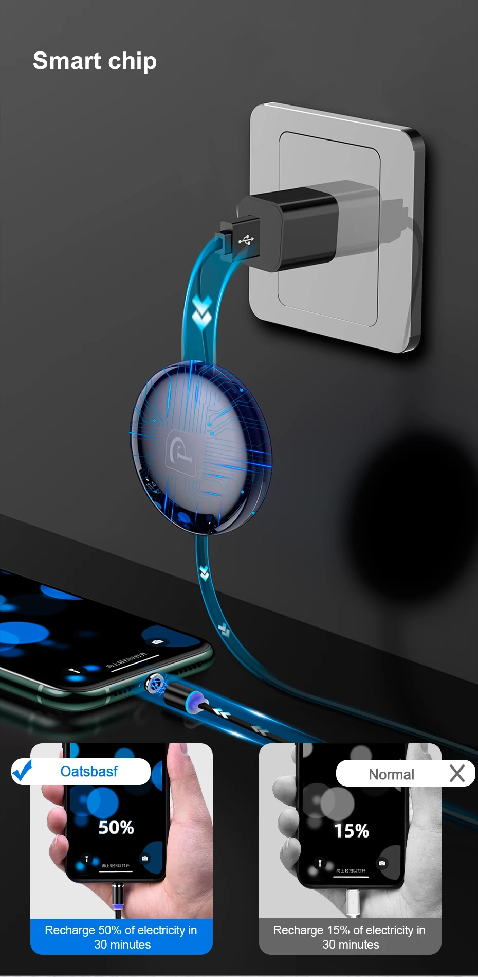 ✿ Mini portable, convenient storage, Iphone / Android / Type-C three-in-one retractable magnetic charging cable, support all smart phones