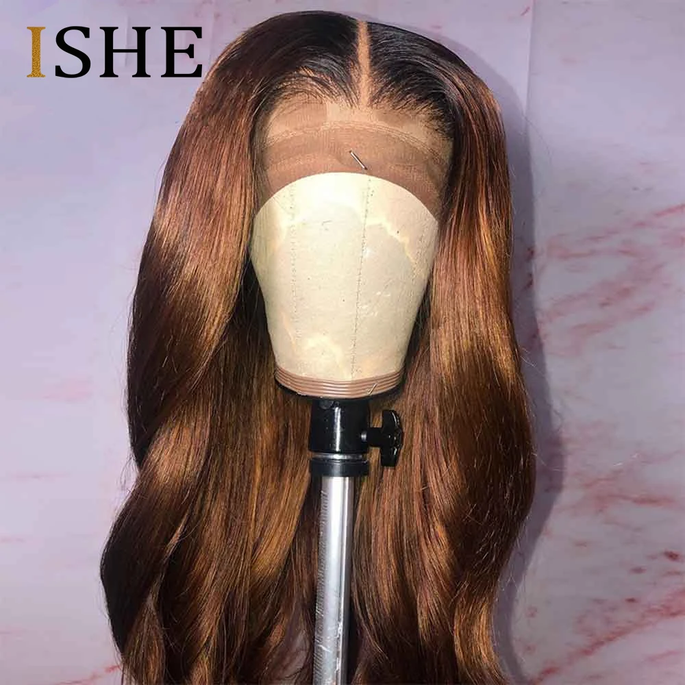 Мёд блондинка с эффектом деграде (переход от темного к Цветной 13x6 Синтетические волосы на кружеве парик человеческих волос объемная волна парики для чернокожих Для женщин Выбеленные узлы 1B 30 Парик Волосы Remy 150