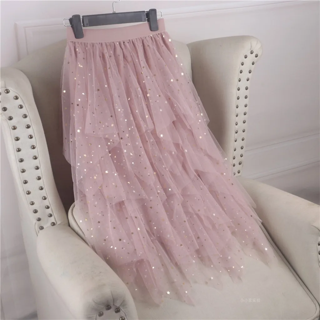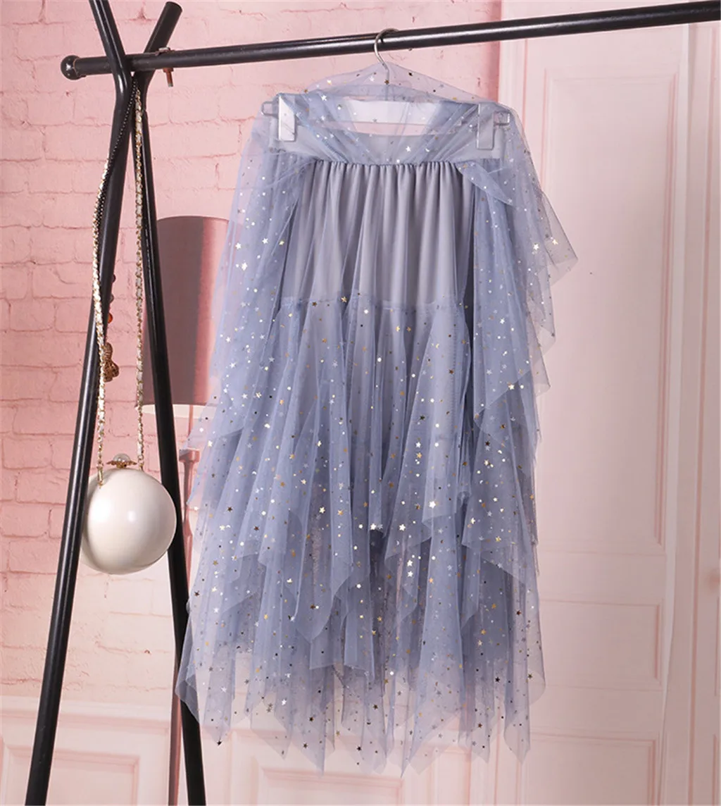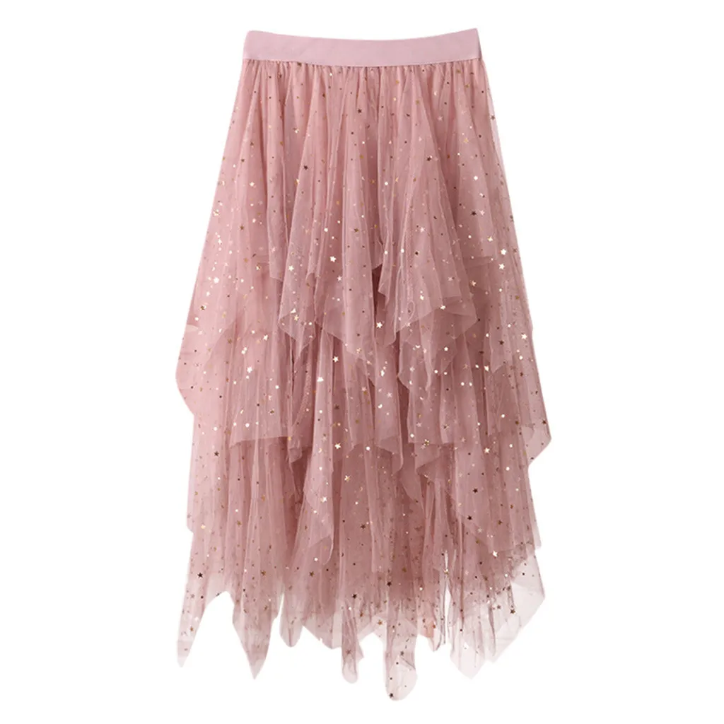 Женская плиссированная юбка с высокой талией, блестящая женская фатиновая юбка