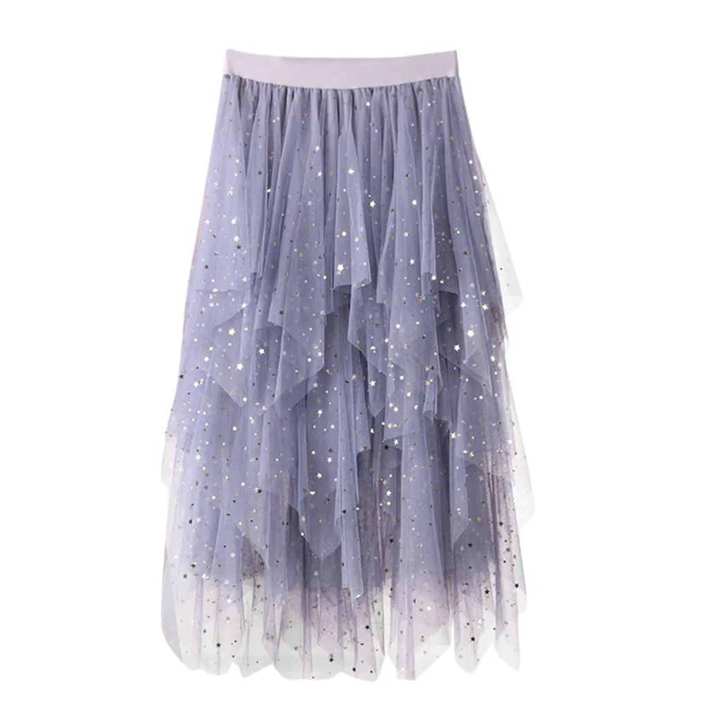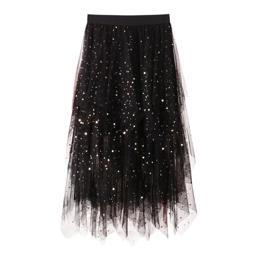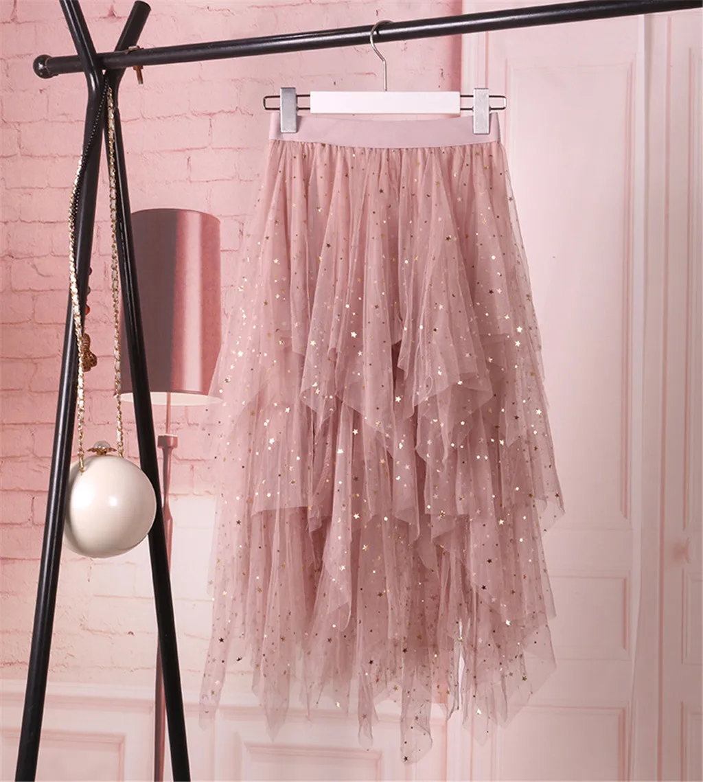 Женская плиссированная юбка с высокой талией, блестящая женская фатиновая юбка