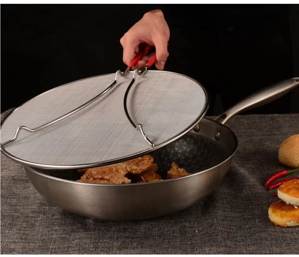 Держит вас в безопасности, когда вы жарите бекон, лук, курицу, все, что на самом деле, горячая смазка и масло могут вылететь из сковороды и сделать вещи очень грязными, плюс вы можете обожгать кожу или даже глаза. Будьте чистыми и безопасными с нашим защитным щитом от брызг, который останавливает почти 100% брызг и тумана, позволяя пару выпадать при готовке. Отлично подходит для жарки во фритюре, вока и многого другого.
