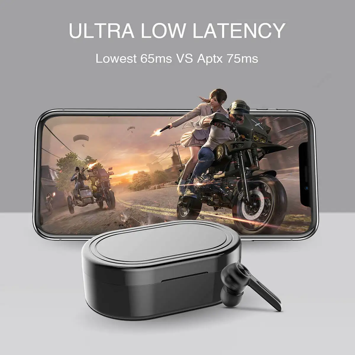 -Сверхнизкий режим задержки игры, самый низкий до 65 мс. -Технология TW + для лучшего и стабильного подключения. -Режим воспроизведения музыки высокого качества. -Bluetooth 5,0, диапазон подключения до 15 метров. -Сенсорная кнопка с обеих сторон для удобного управления. -Выньте его и используйте сразу (сопряжение автоматически). -Качество звука оптимизировано DSP для воспроизведения музыки и голосового вызова. -Ролевые выключатели, любой из наушников может работать отдельно или вместе, нет роли мастер или ведомых наушников. -4-5 часов в режиме воспроизведения музыки, 150 часов работы со чехол батарея, 3000mAh батарея чехол. -Спортивный дизайн и водонепроницаемость IPX5. -Голосовой помощник просыпается. -Индикация заряда наушников на телефоне.