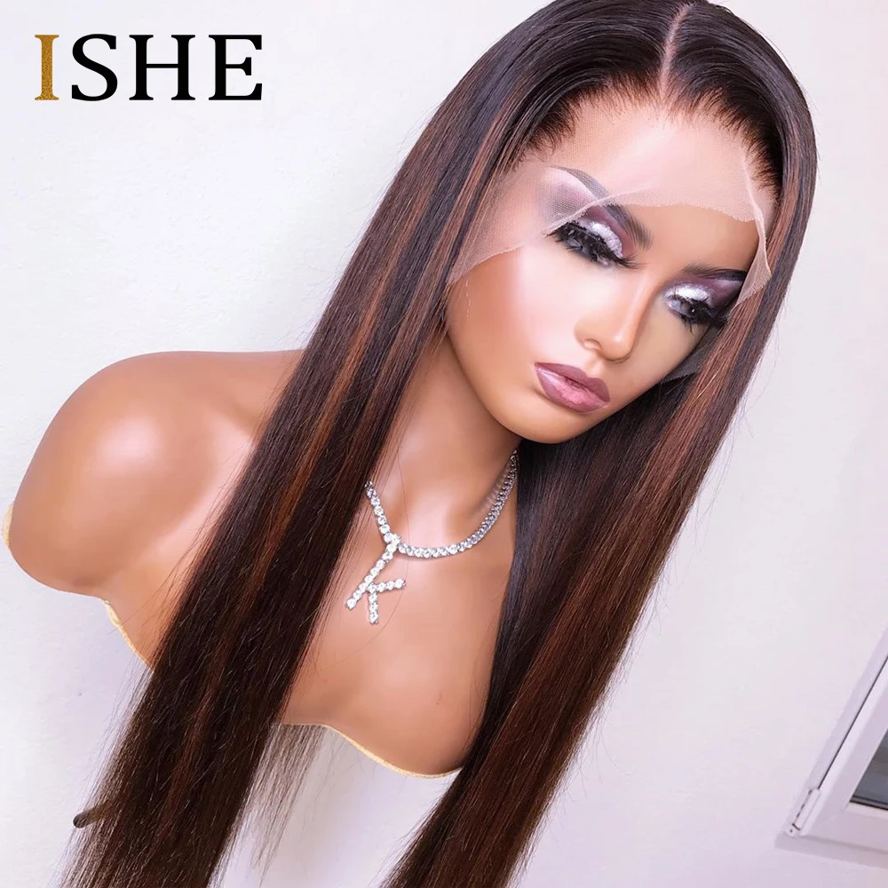 Эффектом деграде (переход от темного к черный с коричневым оттенком Выделите парик прозрачный 360 Синтетические волосы на кружеве al парик предварительно вырезанные 13x6 Синтетические волосы на кружеве парики человеческих волос Remy 150 ишё
