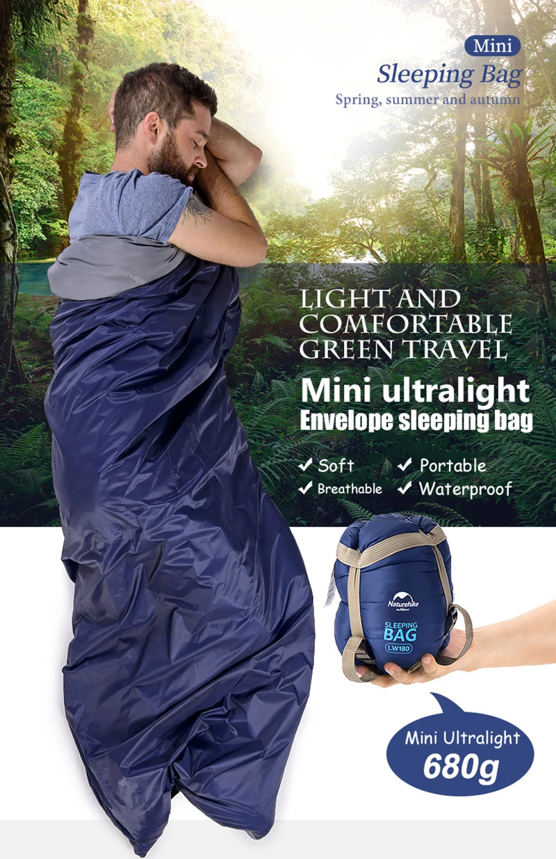 Фирменное наименование: Naturehike Название: Сверхлегкий мини-конверт, хлопковый спальный мешок Материал: нейлон 20D 380T Материал: 240T весенний Текстиль Наполнитель: 80 г/м2 имитация шелка хлопок Цвет: темно-синий, оранжевый, армейский зеленый, небесно-голубой, винный красный Размер: 205X 85 см Хранение: 13X31cm Вес: 760 г Комфортная температура: 15 °C Предельная температура: 8 °C Примечание: Из-за различных методов измерения вручную, вышеуказанные размеры могут иметь погрешность 1-3 см. Просим отнестись к этому с пониманием!
