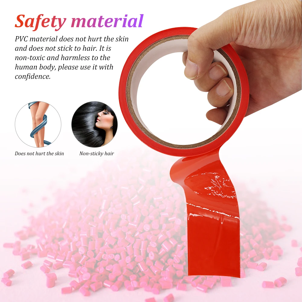 >1. Item Type: SM Bondage for Couple >2. Size: 16 Meters; Adult game props/ As picture show >3. Color: Red,Black,Purple >4. Weight: 140g/adult sex BDSM >5. Material: PVC >6. Feature: Bondage restraints, Bondage Static Tape, Restrain ropes (1) PVC material,Do not hurt the skin,non-sticky hair. (2) Discreet packaging, the packaging and lable not show aboout sex words.