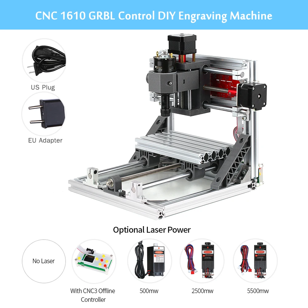 Особенности: Это обновленная версия CNC 1610, по сравнению со старой моделью, с автономным контроллером, может быть скульптурой в автономном состоянии. Это может быть двумя основными преимуществами автономного контроллера: Не нужно подключать компьютер. Вы можете загрузить необходимые файлы для резьбы в автономный контроллер. Не нужно загружать файлы. Автономный контроллер может контролировать все действия, может непосредственно делать некоторые простые изгибы, такие как штамповка, изогнутая форма прямоугольника и так далее. Этот лазерный гравировальный станок с ЧПУ специально разработан для развлечения, обучения и исследований DIY с помощью профессионального программного обеспечения GRBL, что дает вам Экстремальный портативный опыт. Изготовлен из алюминия и с красной окислительной обработкой, цельнометаллический фюзеляж прочный и красивый. Если вы опытный любитель гравировки с ЧПУ, который ищет обновление, вы можете добавить комплект лазерного модуля к машине. С помощью этого модуля, он может дать вам различные способы раскрыть ваше творчество.