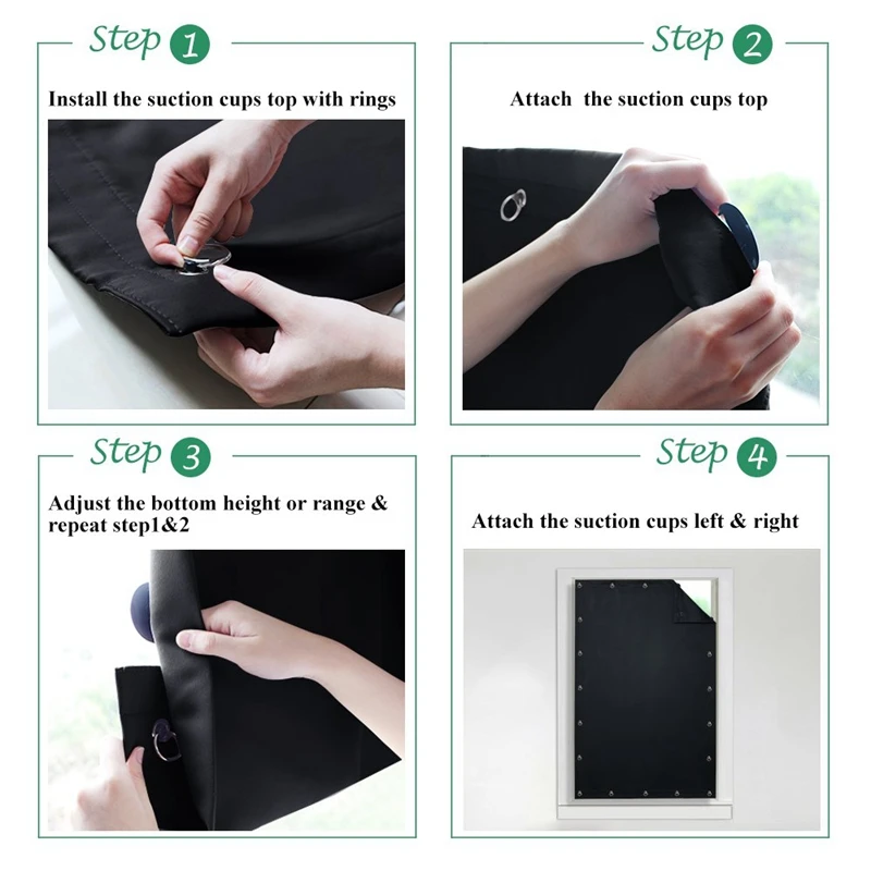 Легко регулировать: присоски позволяют регулировать ширину и длину затемненной слепой драпировки, подходит для застекленных/стеклянных окон, раздвижных дверей, защитных окон.