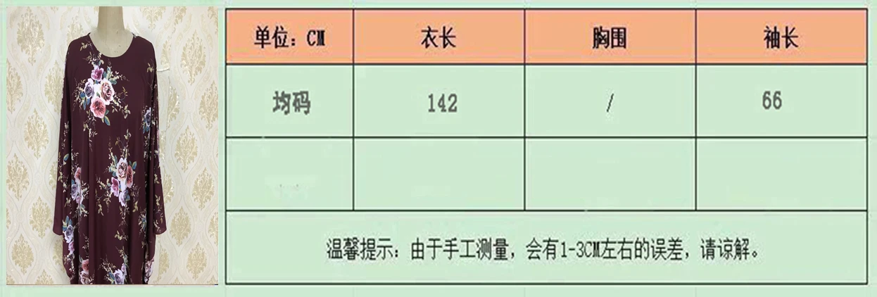 Опишите размеры товара, в том числе различные размеры SKU для F840 Aliexpress eBay рукав летучая мышь в наличии для мусульманских женщин больших размеров