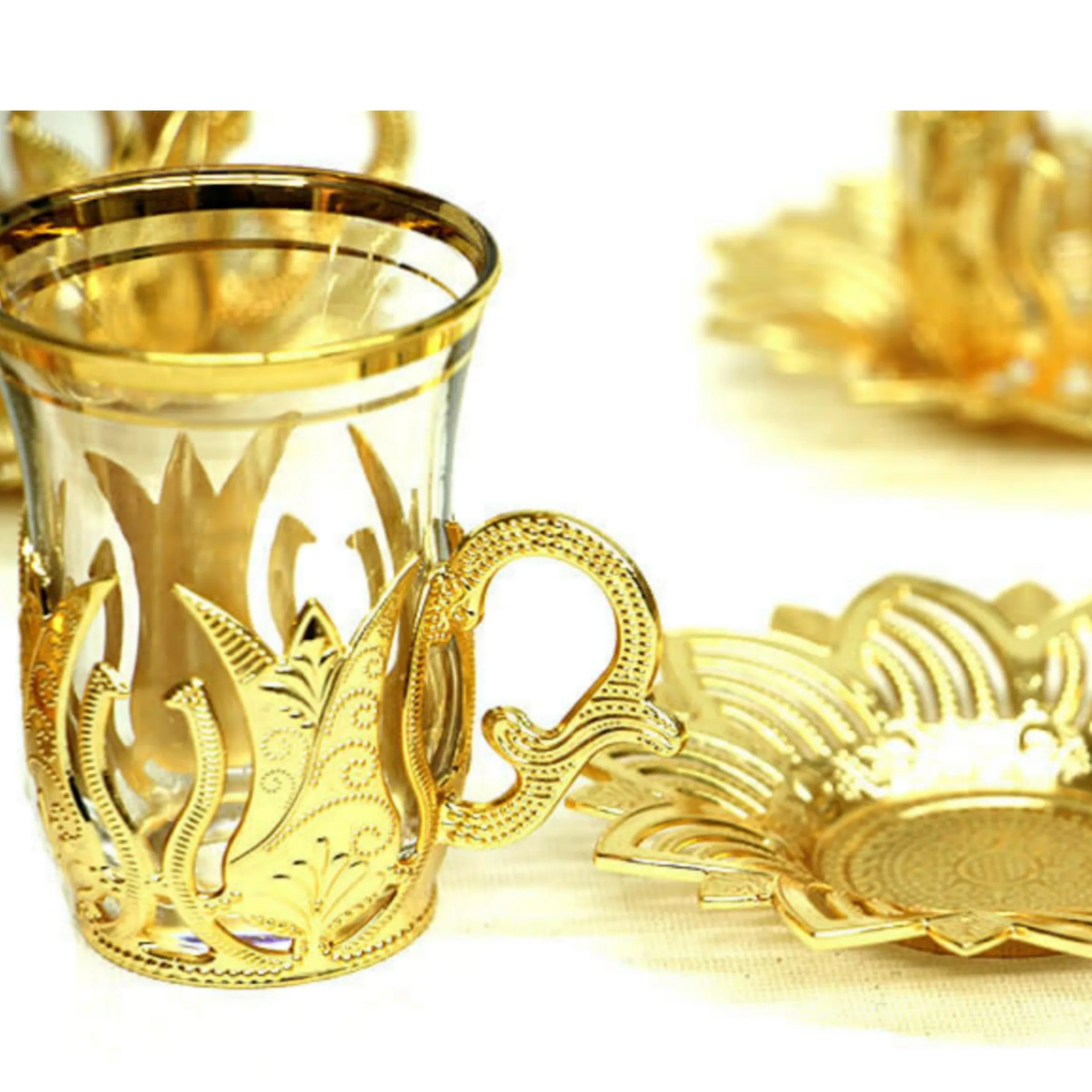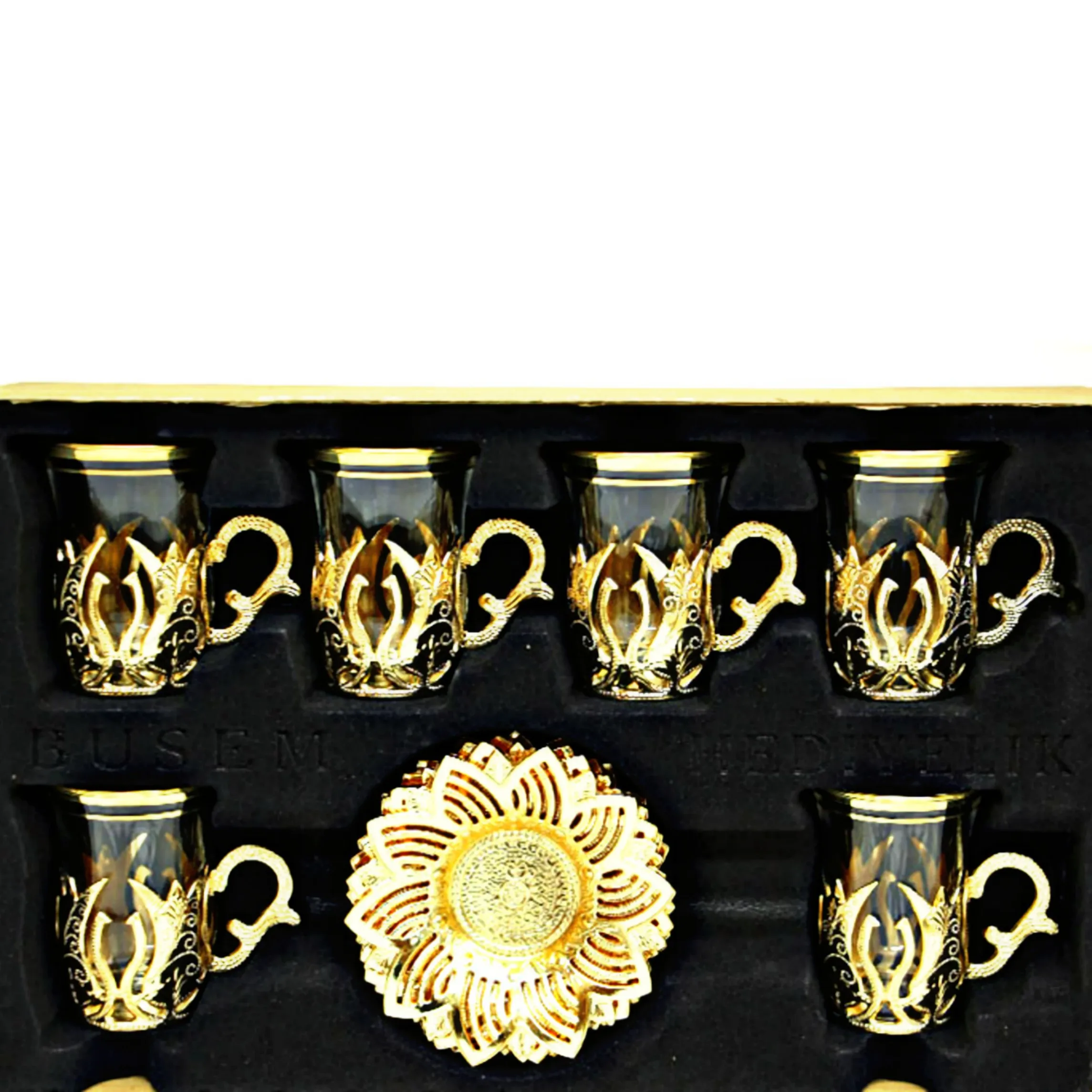 Вы добавите особый вкус к разговору, подавая чае своим гостям с османскими мотивами, пахнущими ностальгией! Ослепляйте ваших гостей мотивами и узорами, которые пахнут историей! Серебряный цвет покрытием. Чайный набор с османским мотивом-серебряный цвет Характеристики продукта: Гравировкой с пуфиком мотивами Не стирать в посудомоечной машине Высушите мягкой тканью после стирки Содержание продукта Набор состоит из 6 предметов, Стекло чашки 6 шт Чай пластина