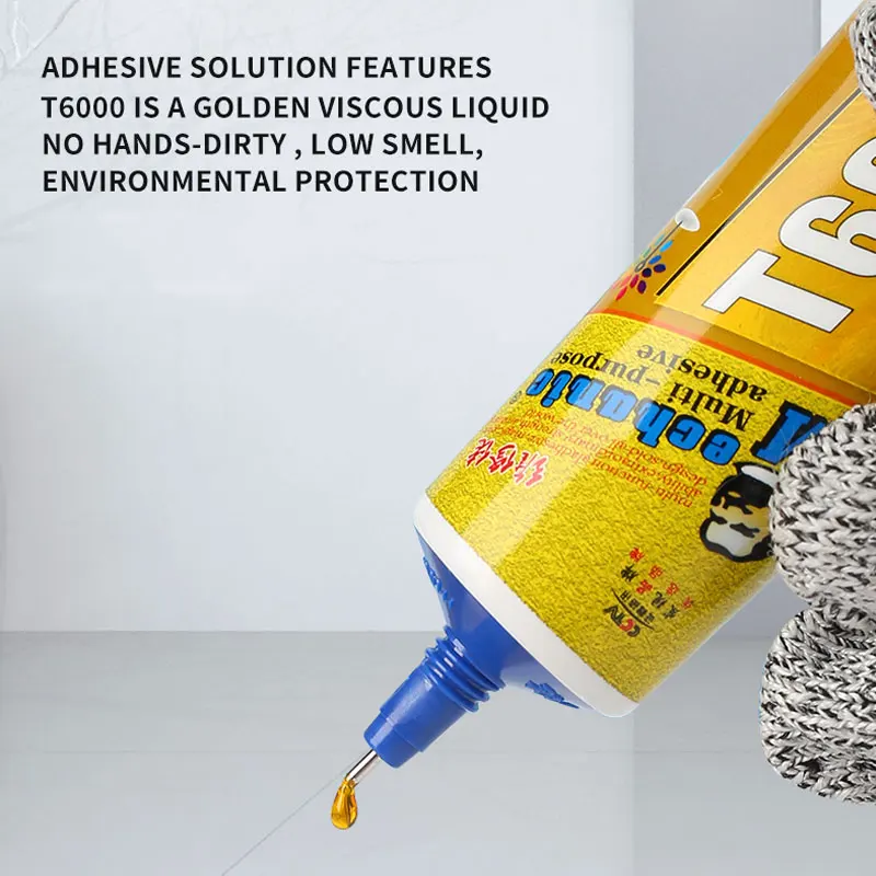 1:Soft slow-drying adhesive, suitable for electronic product bonding 2:T6000 is a golden viscous liquid, does not stick to hands, has a low odor, and is environmentally friendly