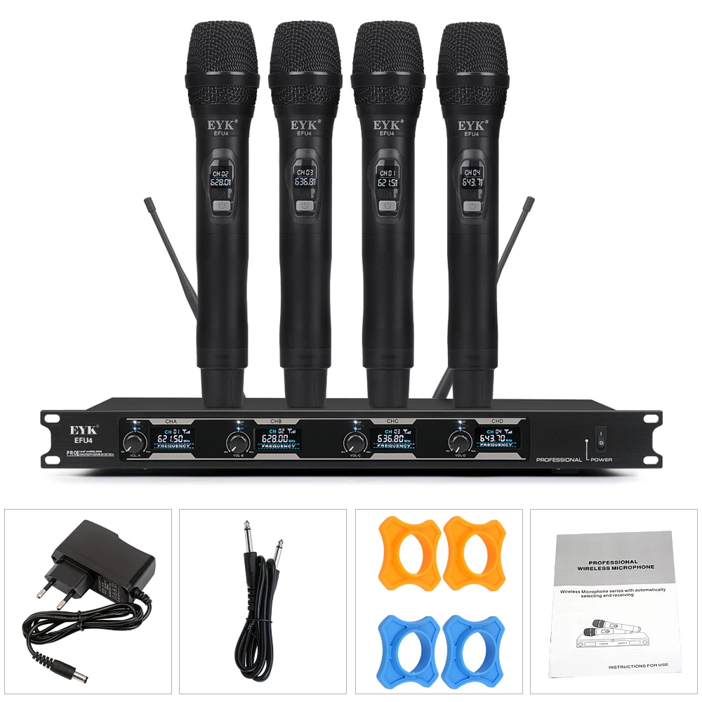 Все металлические конструкции UHF Беспроводной микрофон Системы с 4 ручные для сцены церкви Семья вечерние маленькие караоке