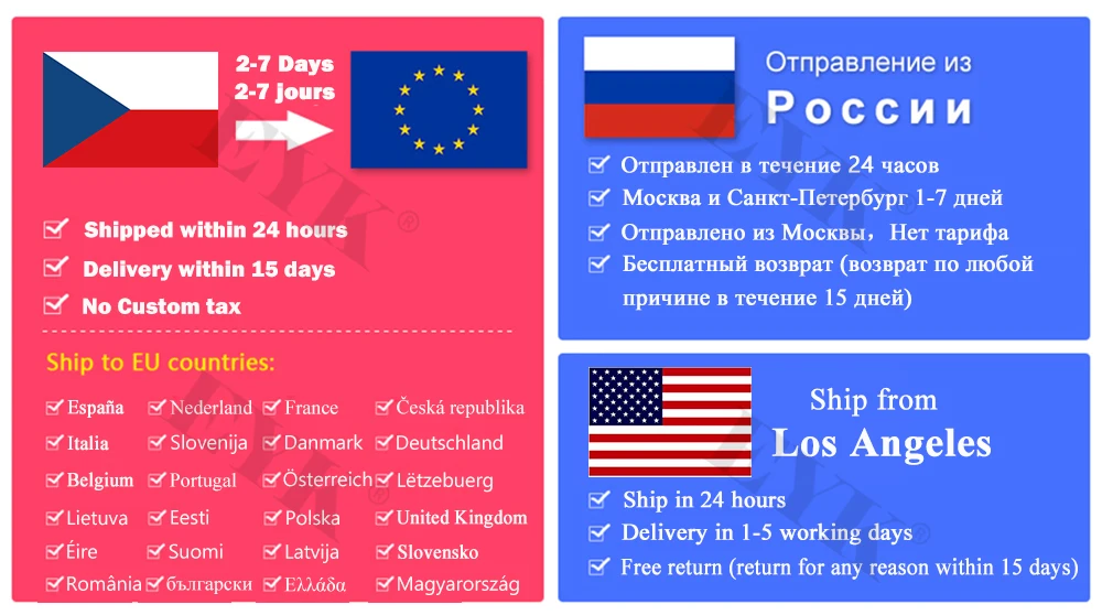 Российская Федерация: Доставка из Москвы Страны ЕС: Доставка из Чехии США: Доставка из Лос-Анджелеса