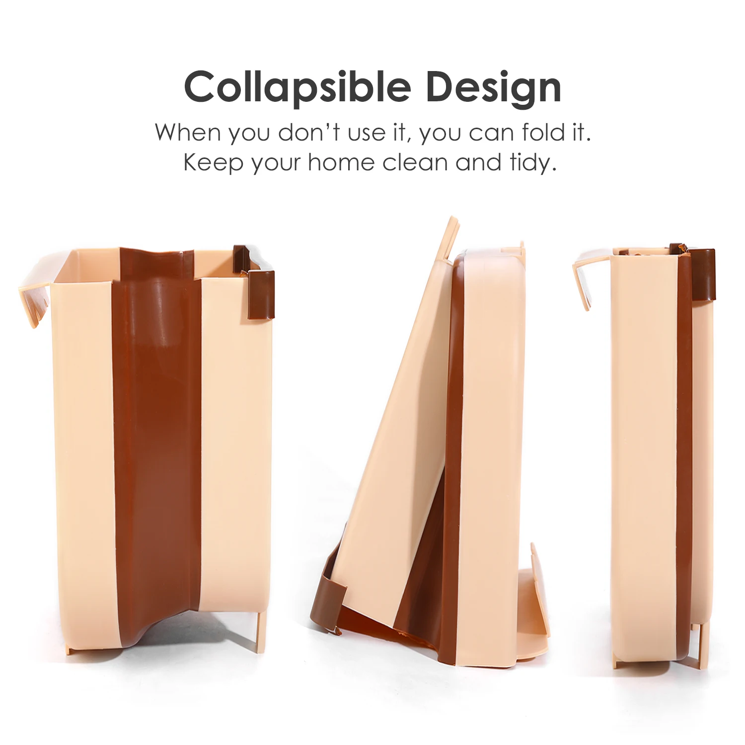 Складное мусорное ведро значительно экономит кухонное пространство. Он имеет небольшой объем, но большой объем. Его можно сложить, когда он не используется. Есть фиксированный кронштейн в нижней части ящика, который также может быть помещен на пол, если это необходимо. Он изготовлен из высококачественного пластика и эластичной резины, нетоксичный, без запаха и прочный. Вам нужно только установить его на любой ящик шкафа или дверь при использовании. Это более удобен в использовании, чем нормальный корзина для мусора. Когда вы готовите еду, вам не нужно открывать и закрывать дверь влажными руками, чтобы выбрасывать мусор.