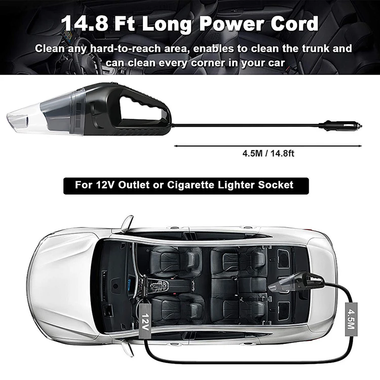 Мощный всасывающий автомобильный пылесос, автомобильный пылесос GRIKEYНазвание: пылесос GRIKEYМощность: 120 ВтНапряжение: 12 В постоянного токаИсточник питания: автомобильный прикуривательДлина кабеля: 4,5 м/177,16''Размеры: 33x10x9,5 см/12,99 ''x 3,94'' x 3,74''В наличии: Россия/ИспанияВремя обработки заказа: 12 часовВремя доставки: от 3 до 15 дней (часть удаленной области имеет некоторые задержки)Какая посылка входит в комплект:1x автомобильный пылесос1 насадка1 насадка для кисти1x EVA шланг2x разъемы1 подарочная сумка1 полотенце из микрофибры