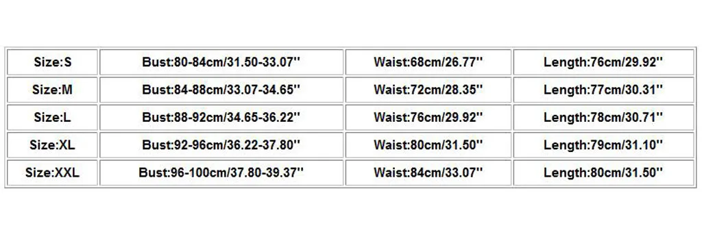 Что вы получаете: 1 * Женский Модное сексуальное нижнее бельеРазмер Бюст Талия Длина S 80-84 см/31,50-33,07'' 68 см/26,77'' 76 см/29,92'' М 84-88 см/33,07-34,65'' 72 см/28,35'' 77 см/30,31'' L 88-92 см/34,65-36,22'' 76 см/29,92'' 78 см/30,71'' XL 92-96 см/36,22-37,80 дюйма 80 см/31,50'' 79 см/31,10'' XXL 96-100 см/37,80-39,37'' 84 см/33,07'' 80 см/31,50''
