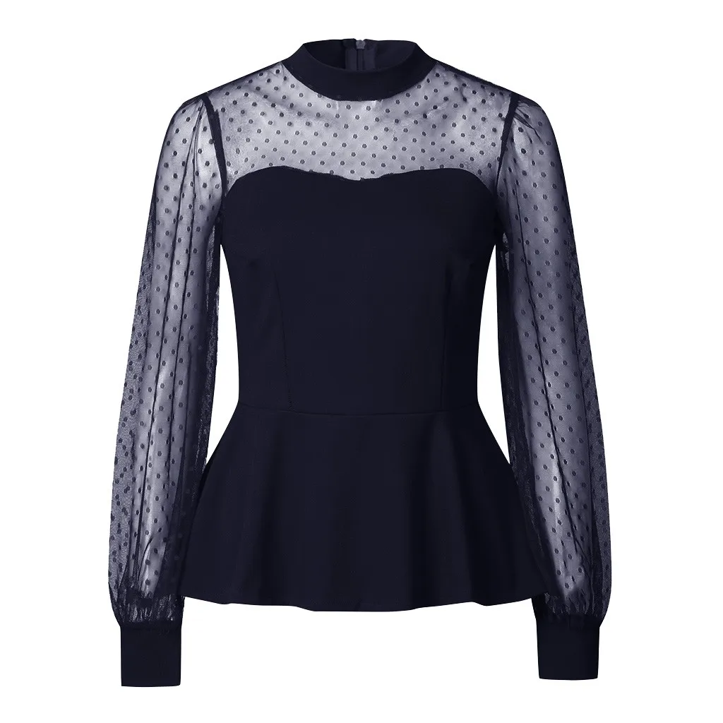 Особенности: Изготовлено из высококачественных материалов. Отличный подарок для ваших любимых или вас. Женская блузка в горошек с длинным рукавом и рюшами. Комплектация: Топы-1 шт.