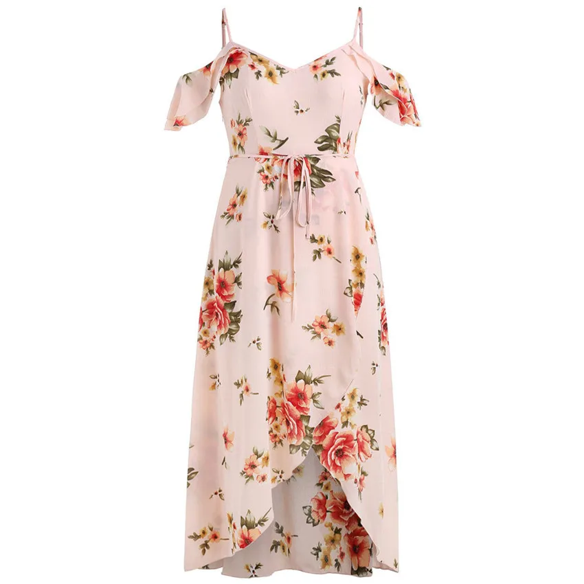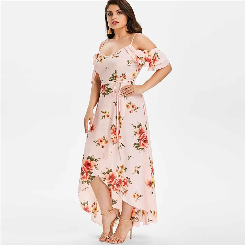 Женское повседневное длинное платье размера плюс с коротким рукавом и открытыми плечами в стиле бохо с цветочным принтом