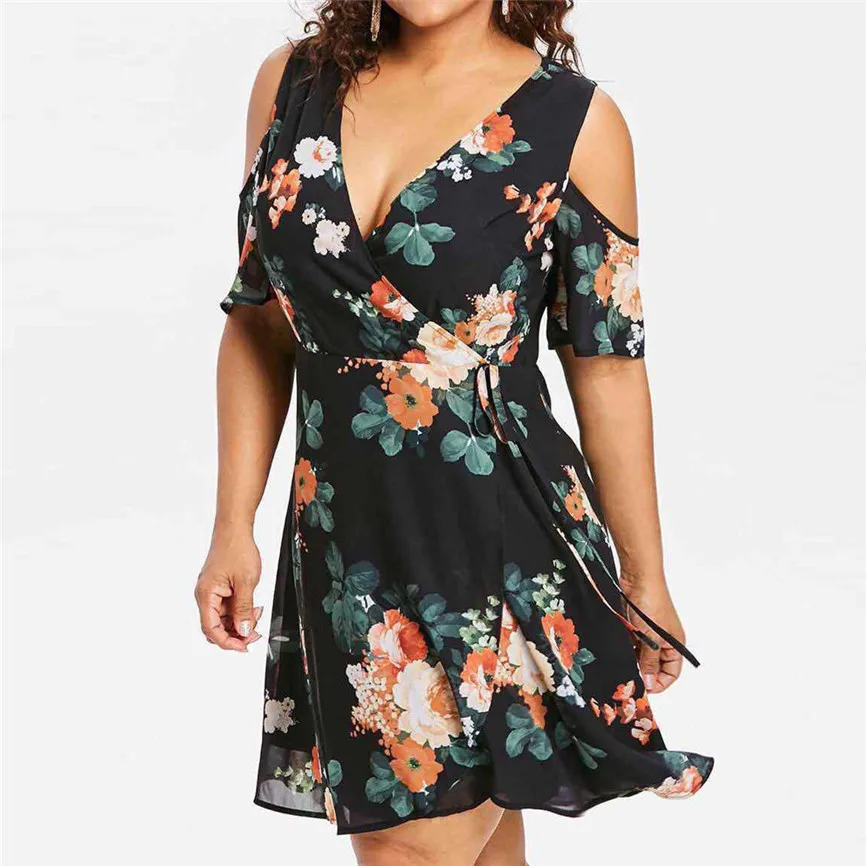 1. Особенности: модная повседневная одежда, размер плюс, Холодное сердце, цветочный принт, короткий рукав, платье.