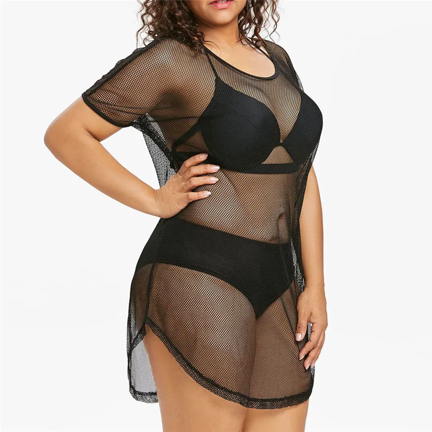1. Особенности: модное женское платье большого размера, круглый вырез, бикини, накидка, купальник, купальный костюм, сетка, пляжное платье.