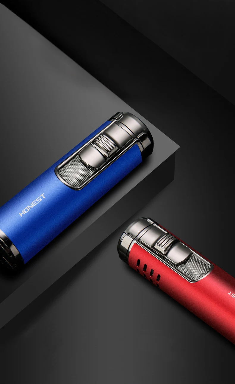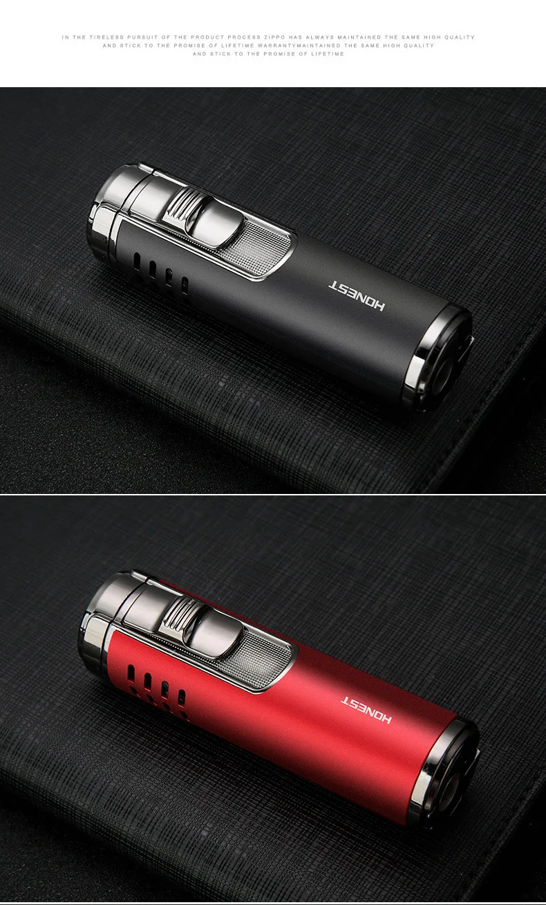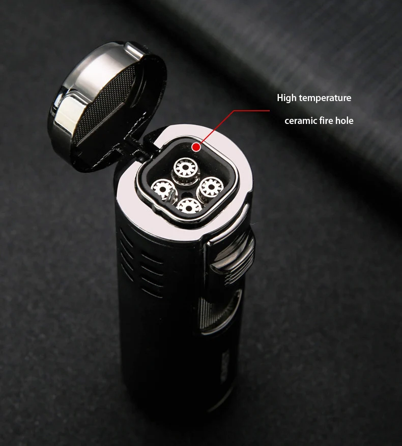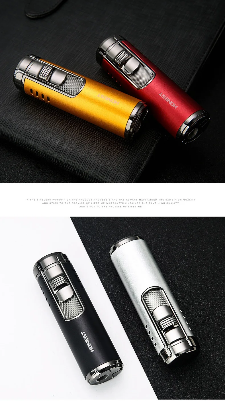 Цилиндрическая металлическая надувная четыре прямые сигары зажигалка высокого класса Бутик синий огонь многофункциональная сигарета легче, чем газ-Бутан