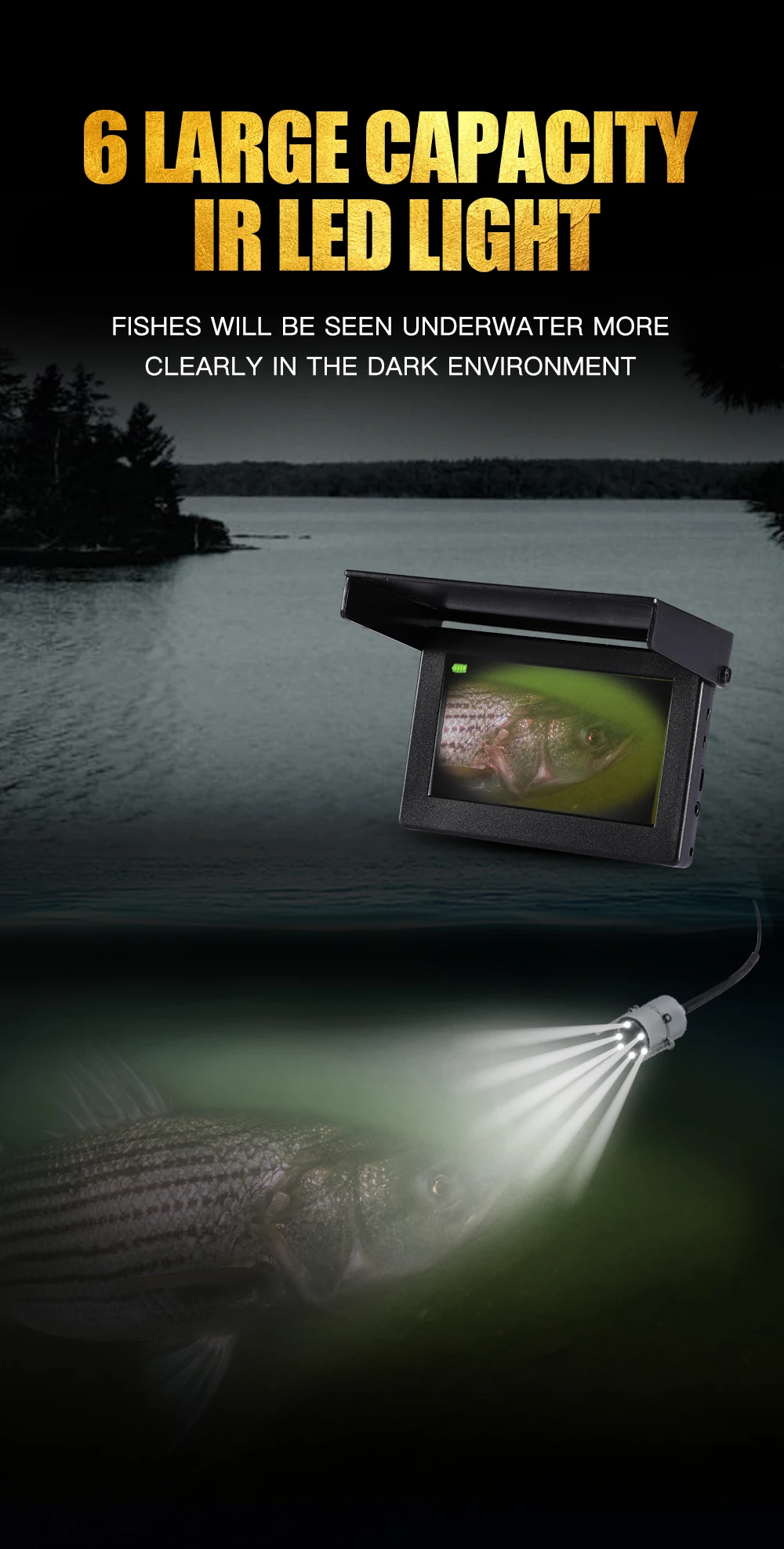 1) Дисплей: 4,3 дюймовый ЖК-дисплей 2) используется для рыбалки, дайвинга, плавания и других видов спорта на открытом воздухе 3) 6 ИК светодиодный светильник, обеспечивающий более широкий диапазон подводного видения 4) Видимый угол: 195 градусов 5) Длина кабеля: 20 м 6) Питание: 3,7 в перезаряжаемые литиевые батареи 7) Рабочая температура: от 14 до 122 градусов (от-10 градусов до 50 градусов)