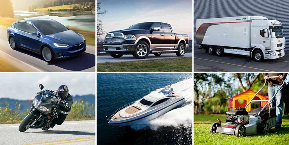 Бензиновые автомобили 12 В с рабочим объемом не более 8,0 л. Автомобили с дизельным двигателем 12 В с рабочим объемом не более 6,0 л. Тип транспортного средства : Автомобиль / Внедорожник / Автомобиль бизнес-класса / Электромобиль / Мотоцикл / Фургон / Пикап / Небольшой грузовик