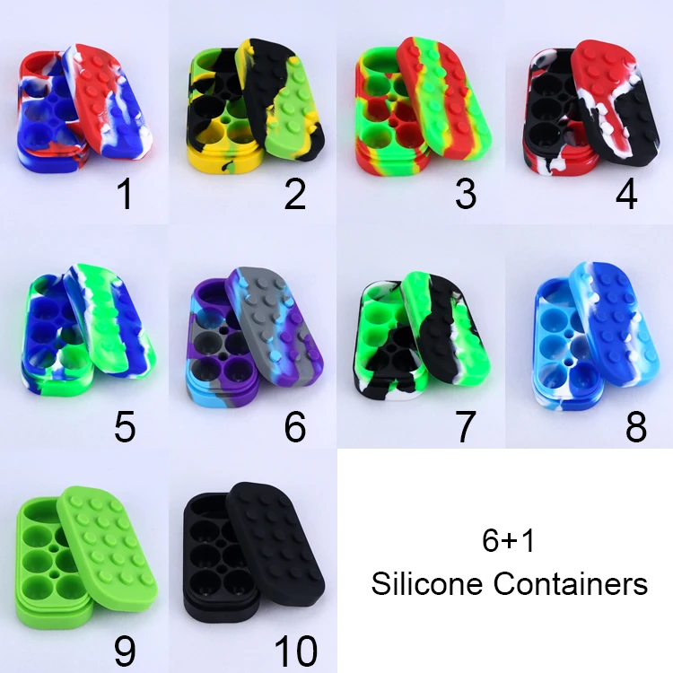 4ML*6+10ML*1 All in one Silicone Jar Dry Herb Vaporizer Wax Box Unbreakable For Oil Wax Dab Cream Dab Tool