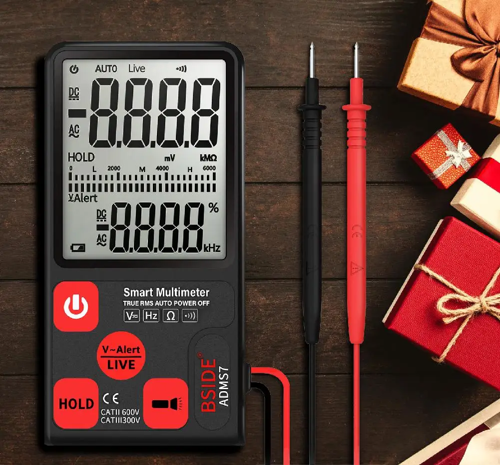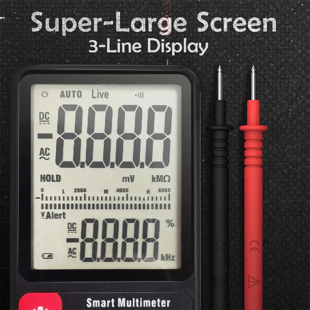 V-Alert(Non-contact Voltage Detection):Intelligent display of dangerous voltage high, medium and low.(beep alarm sounds)