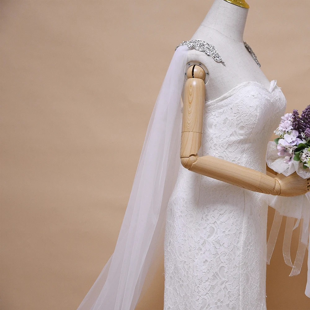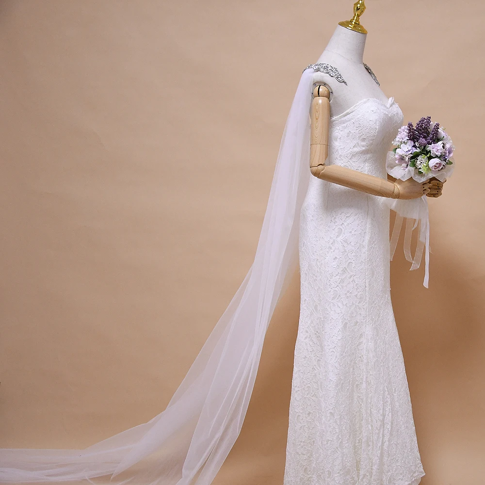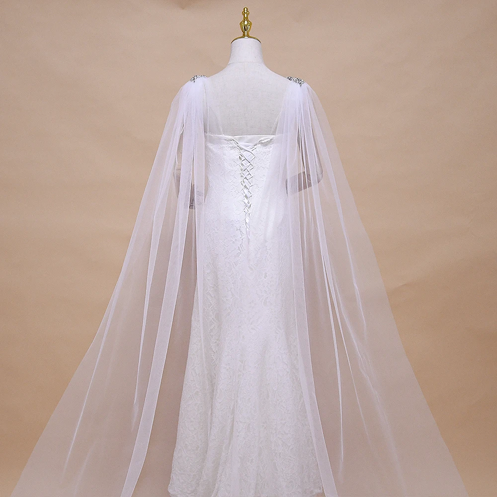 TRiXY G19 Long Train Shawls Women's Long Capes for Wedding Party 3 M Rhinestone Chiffon Bridal Shawls Wraps for Formal Party