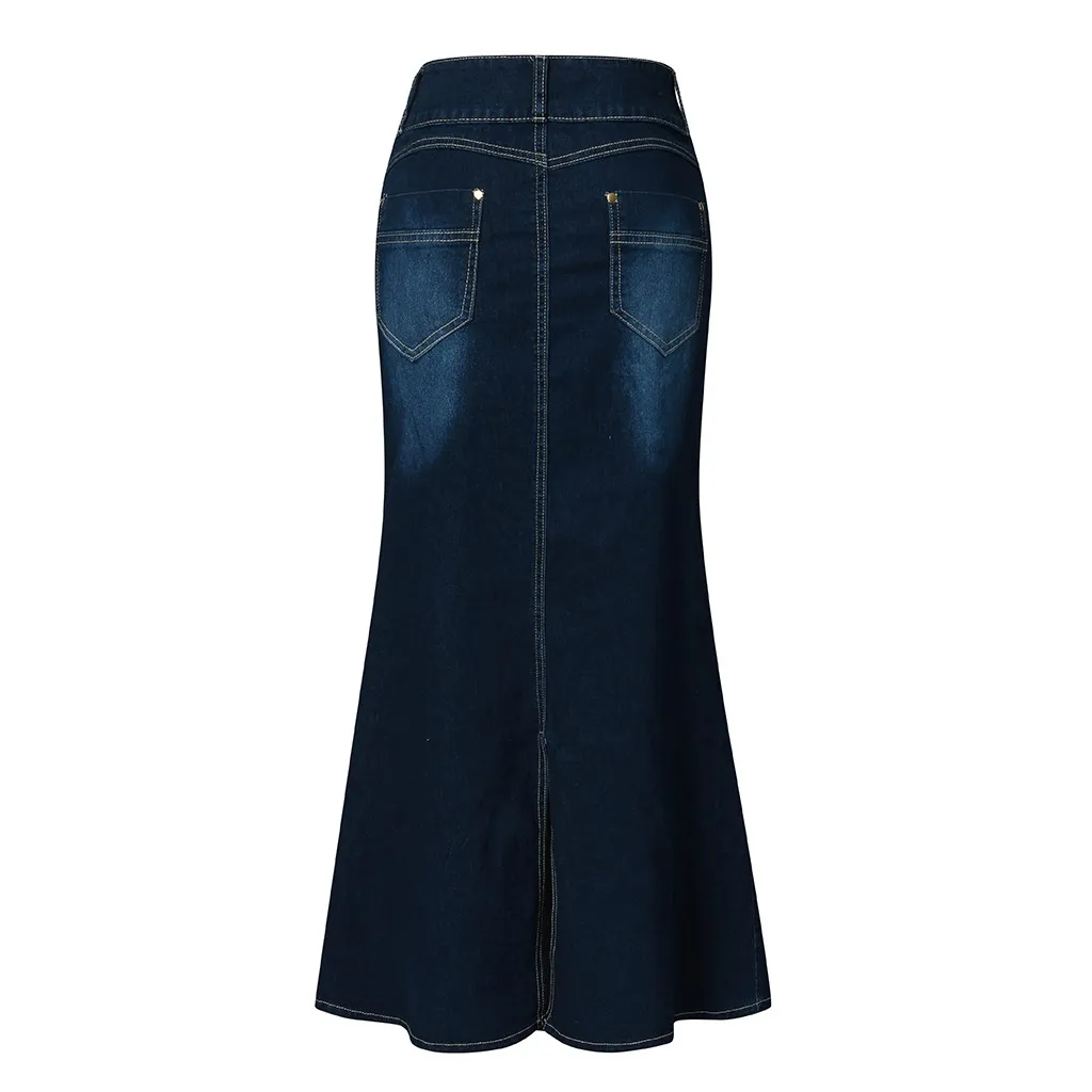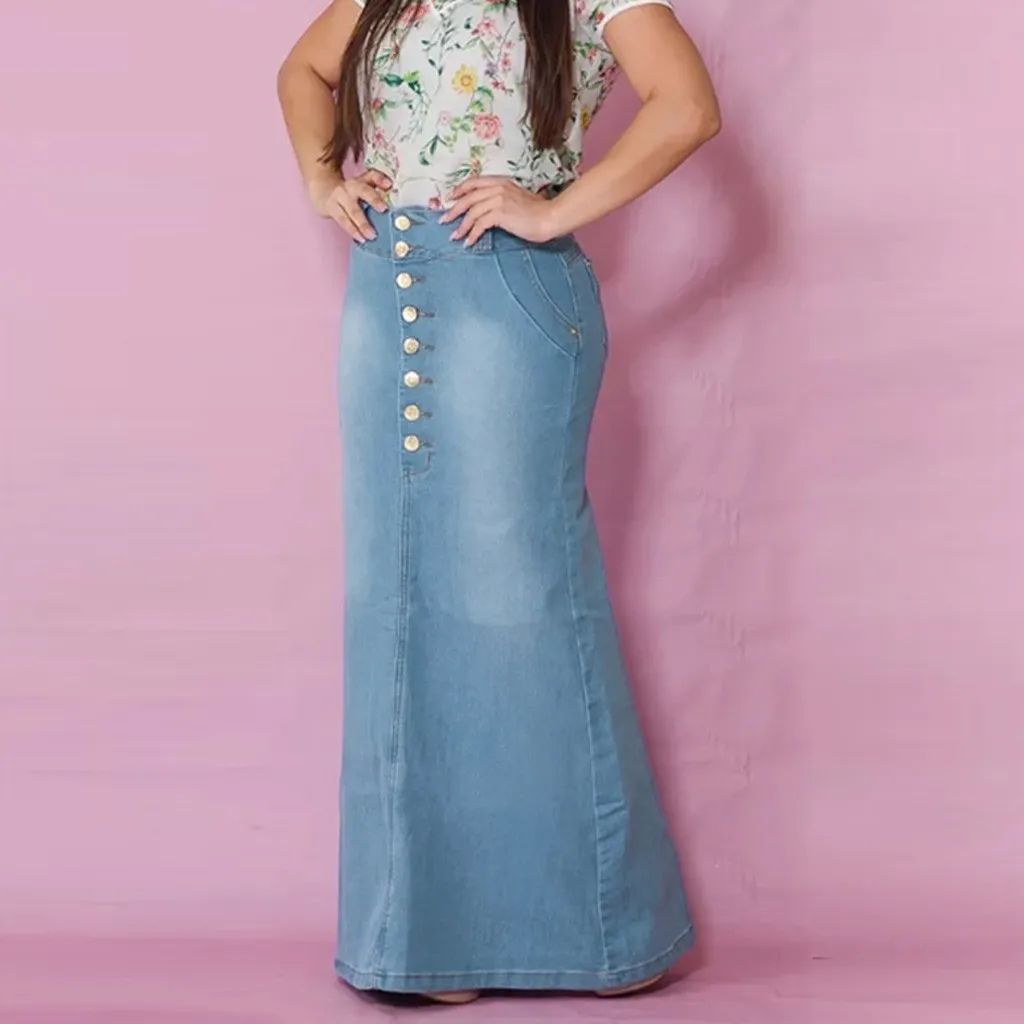 Для женщин Повседневное НА ПУГОВИЦАХ СПЕРЕДИ Потертые джинсовые трапециевидные юбки, длинная джинсовая юбка