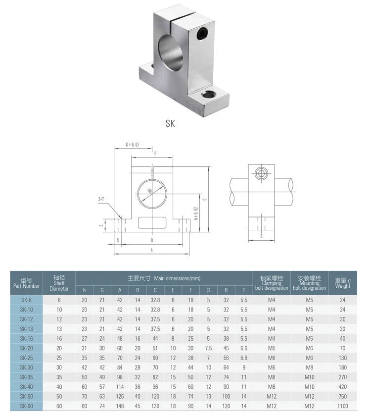 Наименование товара: 8 мм линейный подшипник рельсовый вал Поддержка XYZ Таблица CNC маршрутизатор 3D принтер Часть