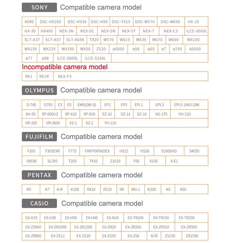 Продукт работает с большинством SDHC Совместимые камеры от ваших любимых брендов, в том числе, Canon, оптическими зумом Casio, HP, Nikon, Sony, Olympus, Panasonic, Sanyo, Sony и многое другое.