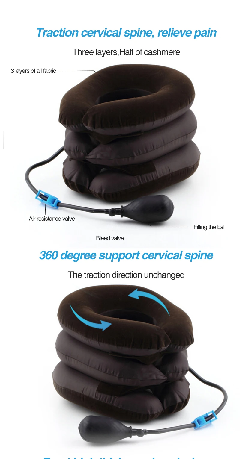 Воздушная тяга шейный бандаж является вспомогательным устройством, чтобы помочь людям с шейным cervical сделать самолечение, частое использование прибора поможет людям предотвратить шейный cervical, снять боль в шейки матки и усталость, высвобождение клинических отклонений воздухом. Он разработан на основе различных функций, таких как воздушная тяга, фиксация. Это здоровый друг здоровья для людей, особенно для людей среднего возраста и пожилых людей. Подходит для:' Он подходит для людей с шейным spondylopathy, он поможет людям предотвратить шейный cervical, снять боль и усталость шейки матки, высвобождать клинические синдромы воздухом.