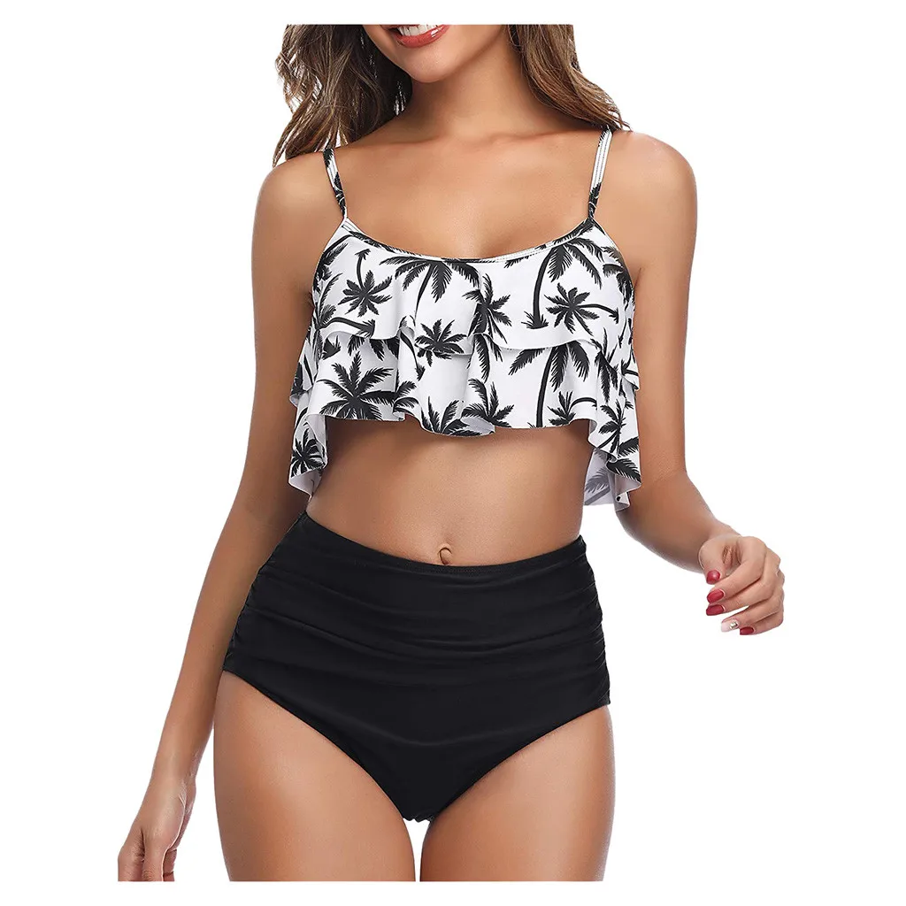 Женский купальник-бикини с принтом дерева и высокой талией, пуш-ап, пляжная одежда, купальник