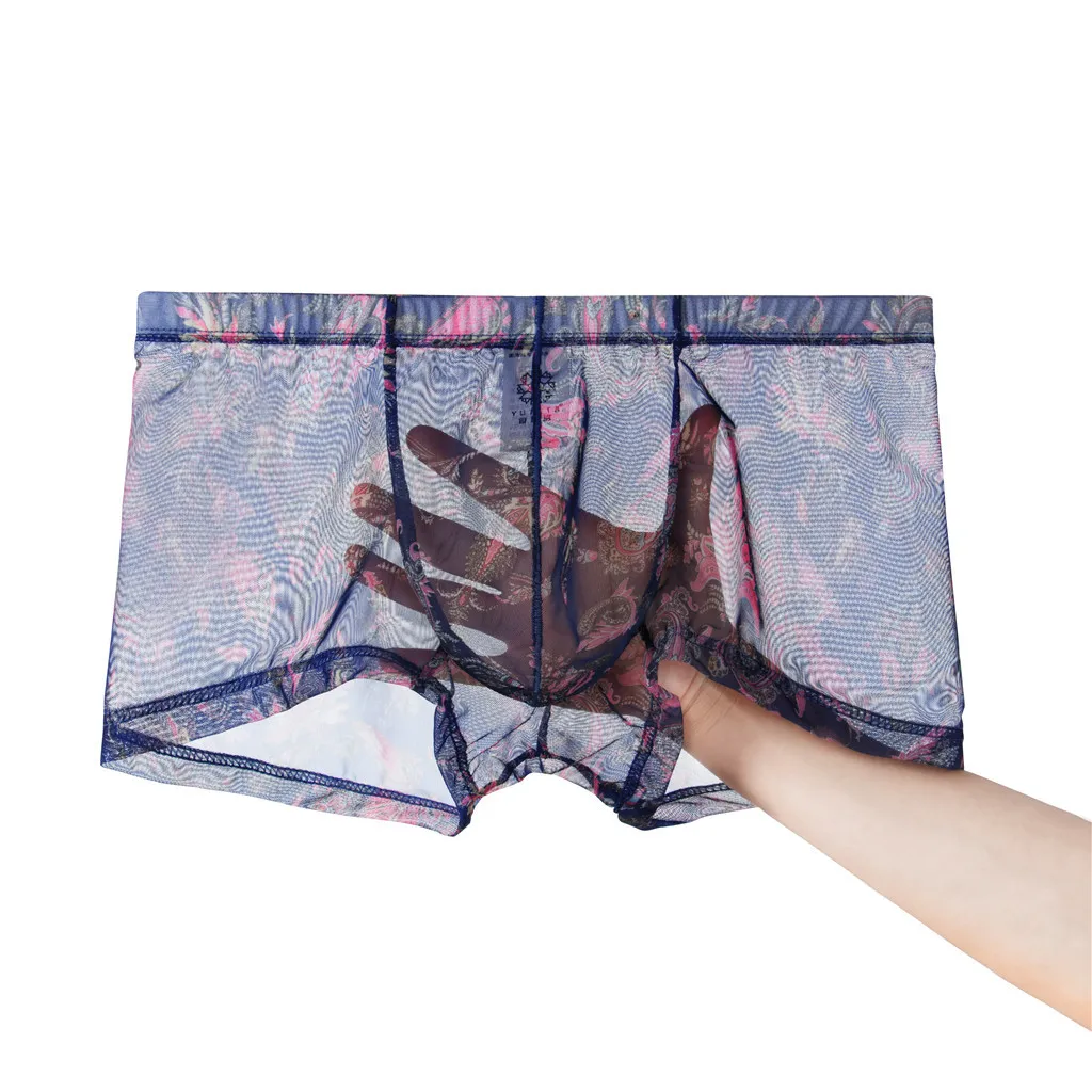 Боксеры мужские шелковые сексуальные прозрачные Боксеры Шорты u-выпуклые пенис мешок дышащее нижнее белье мужские Бесшовные сексуальные трусики