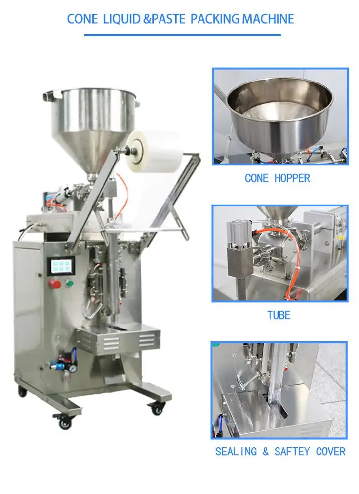 Описание товараМашина подходит для автоматического наполнения и упаковкиЖидкость/паста/Соус/Крем, Например,Молоко, мед, шампунь для волос, томатная паста, Заправка для салатов, варенья и т. Д.Машина принимает пневматический насос дозируя блок, который имеет преимущество машины костюм для вязких жидких изделий с высокой эффективной и надежной производительностью. Самое главное, что машина оснащена небольшой горизонтальной лентой блендер смешивания машины, это сделает машину много подходит для приправ пасты/соуса, таких как Чили пасты, для смесительной машины паста будет равномерно упакована с меньшим дозатором.