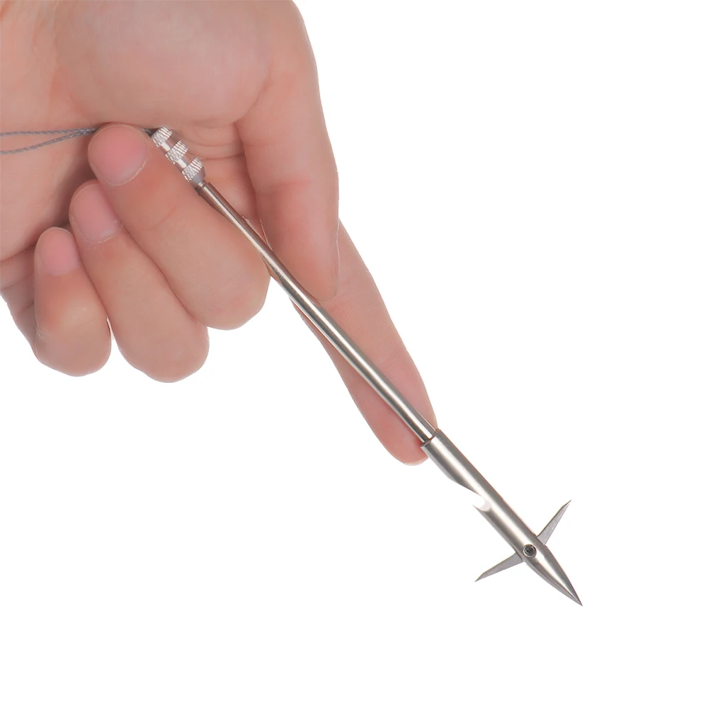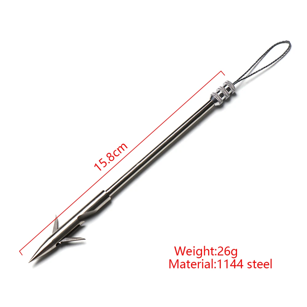 Совершенно новый и высококачественный. Подходит для рыбалки рогаткой или луком. Цвет: серебристый Материал: нержавеющая сталь Длина: 15,8 см Вес 26 г